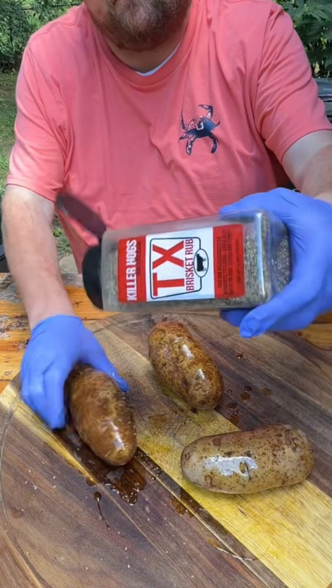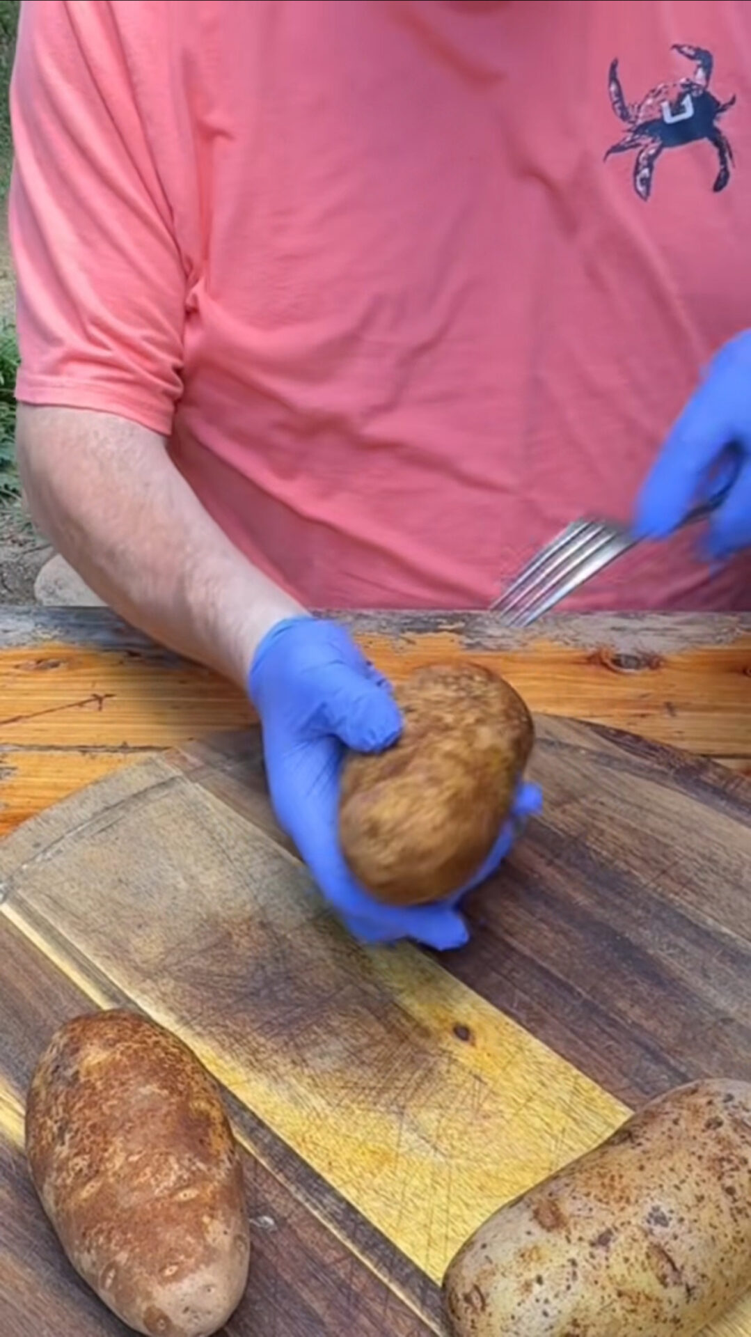 • Wash and dry the potatoes, then pierce them all over with a fork. Rub the potatoes with olive oil and season with TX seasoning or salt and pepper if needed. Bake the potatoes for 90 minutes until tender.