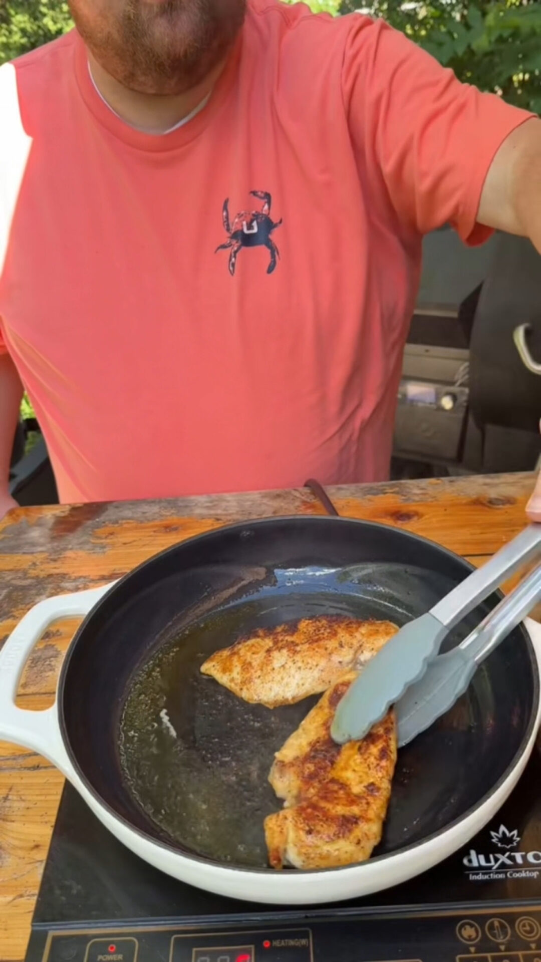 Once your potatoes are nearly done, grab a skillet and heat some olive oil over medium-high heat. Season your chicken breasts with the same TX and Rockin Rooster seasonings, then sear them in the skillet for about 4-5 minutes on each side. You’re looking for that golden-brown crust – trust me, that’s when the magic happens.