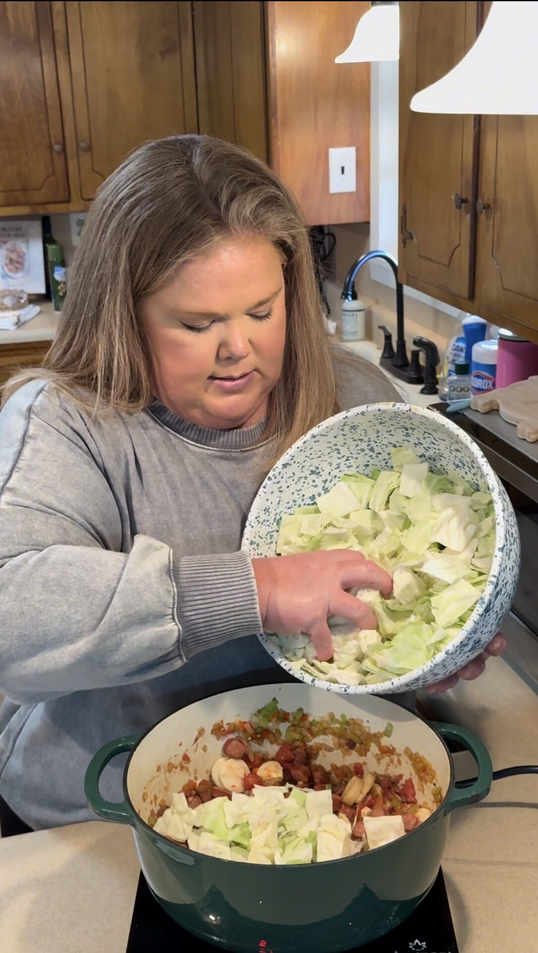 You’ll know it’s done when the cabbage is tender and everything looks well combined. If you’re using black-eyed peas, stir them in at the end before serving.