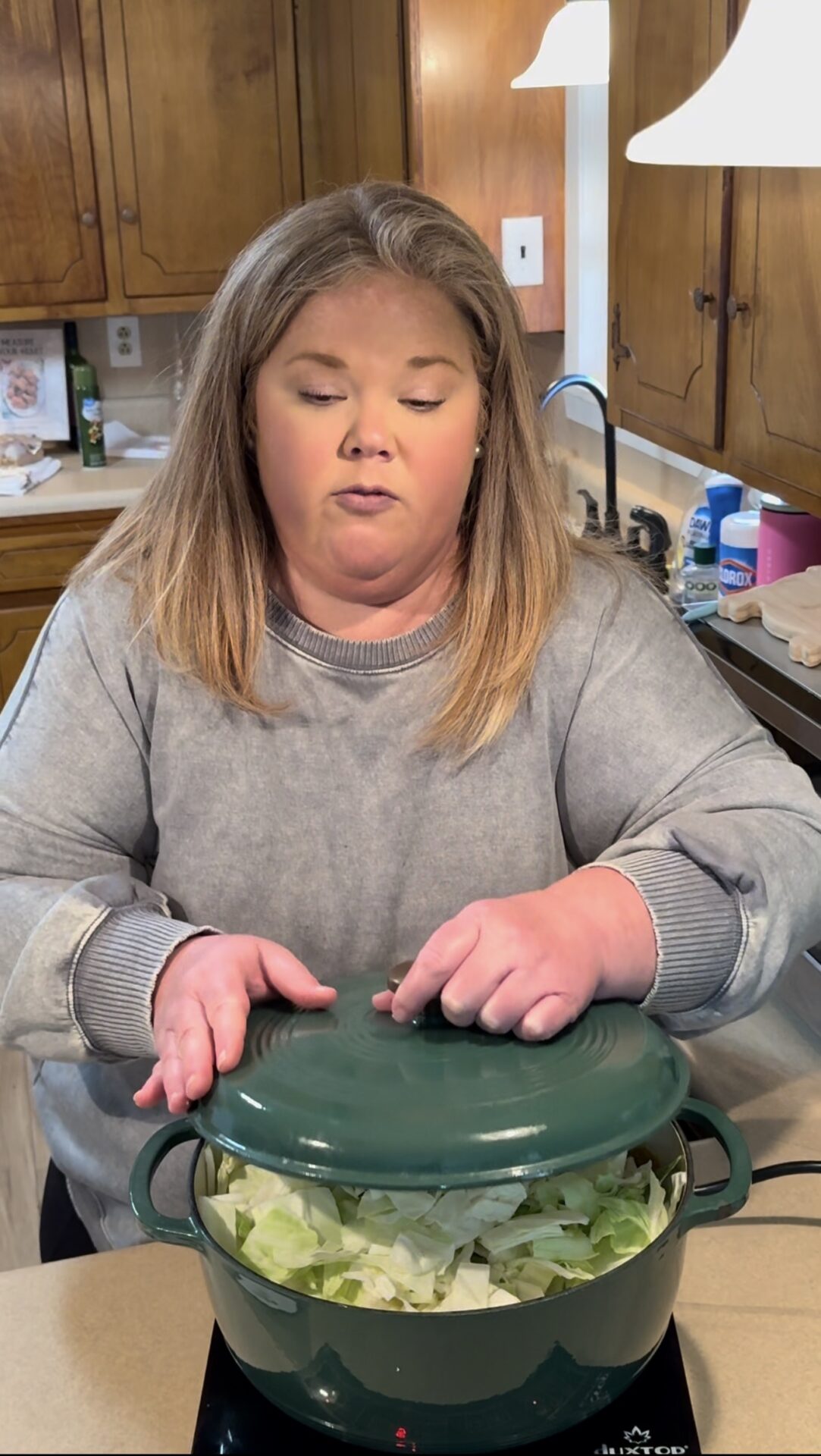 - Add in the cabbage and cover.